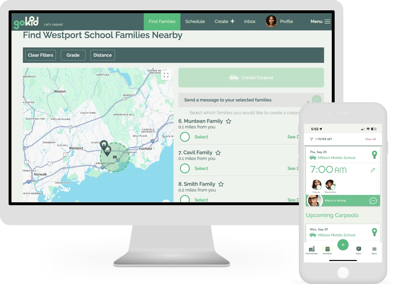 Set up or join a carpool with families you trust.