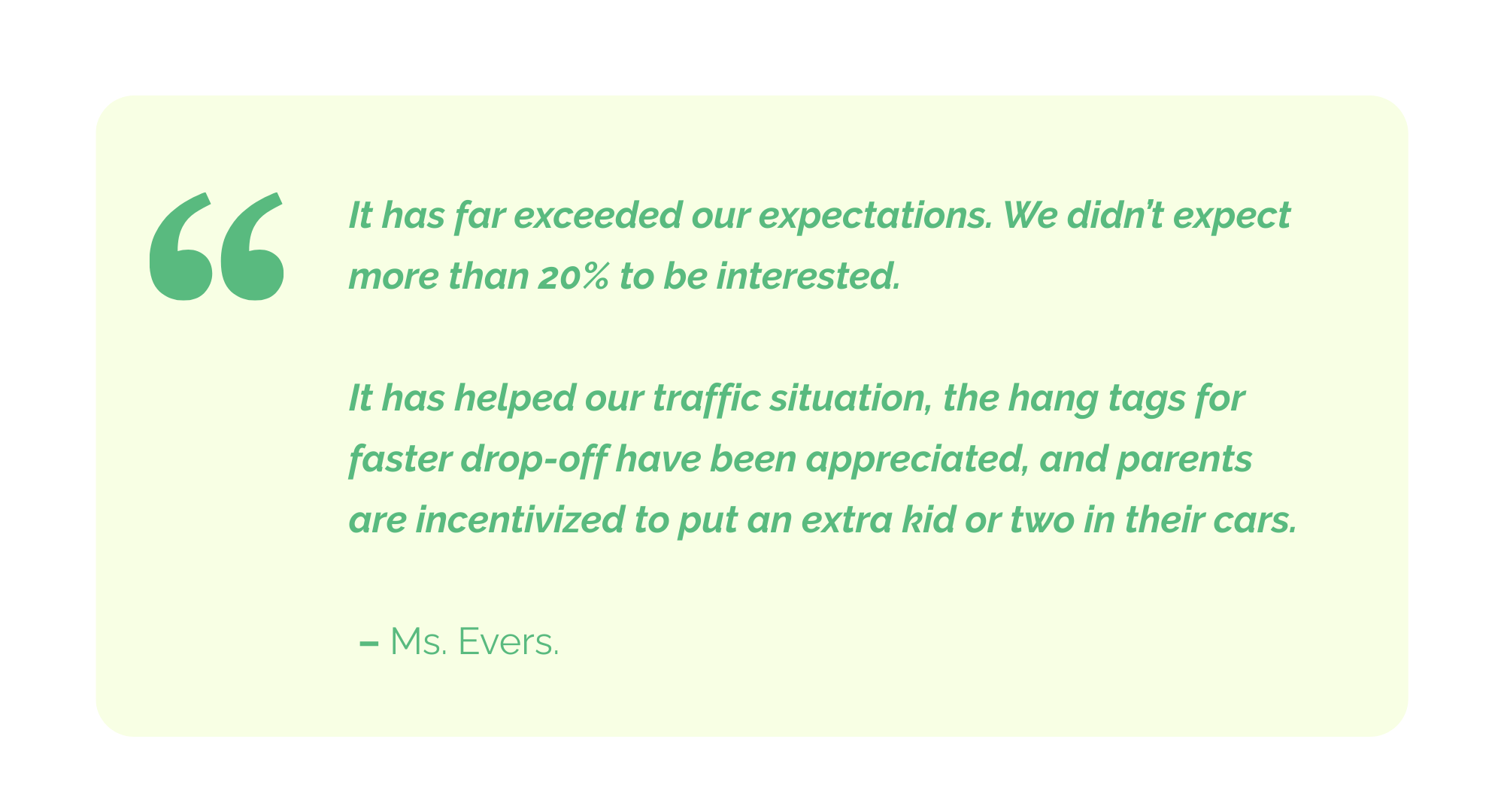 The school began exploring all options, including adding additional bus routes. At the same time, leadership recognized that carpooling – if done well – could relieve traffic and improve the daily experience for families.